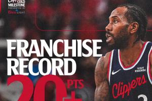 倫納德連續45場比賽得分20+,超越鮑勃·麥卡杜獨占快船隊史第一。