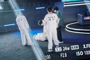 書源選手因賽前調(diào)試過程中不慎摔倒,本場賽前活動人員更換為小小飛選手,并且本場比賽的賽前擊掌活動書源也將缺席。