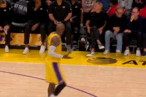 最后,詹姆斯抬頭 試圖從大屏幕得知八村塁的犯規次數。