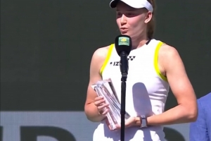 體育資訊3月16日訊 WTA1000印第安維爾斯決賽,薩巴倫卡2-1逆轉(zhuǎn)萊巴金娜奪冠,萊巴金娜在頒獎(jiǎng)儀式上發(fā)表了演講。
