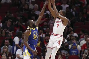 就此,勇士近8場比賽中僅取得1勝7負的戰績,唯一贏的是老對手火箭。