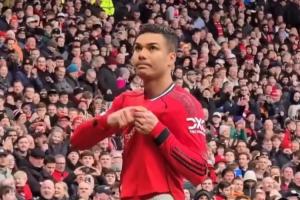 名記羅馬諾曬出視頻,卡塞米羅在進球后頻頻指向隊徽。在賽后曼聯球迷們高唱卡塞米羅再留一年。
