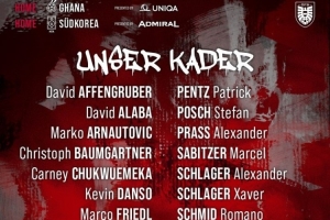 本月國際比賽日,奧地利將與加納以及韓國交手。
