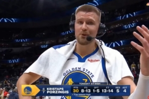 本場比賽,波爾津吉斯出戰26分鐘,13中8,14罰13中砍下勇士生涯新高的30分外加5板4助2斷3帽。