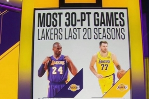 這是東契奇本賽季第37次單場30+,過去20個賽季,湖人單賽季30+最多的是06-07賽季科比的38次。