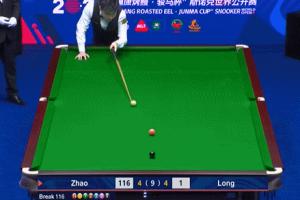 決勝局中趙心童轟出129分破百獲勝,他的單手擊球也引發(fā)現(xiàn)場(chǎng)觀(guān)眾歡呼。