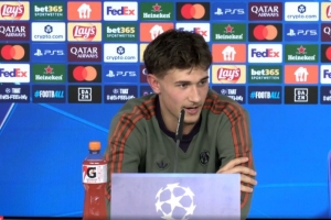體育資訊3月17日訊 北京時(shí)間3月19日凌晨4:00,歐冠1/8決賽次回合,拜仁將坐鎮(zhèn)主場(chǎng)迎戰(zhàn)亞特蘭大,首回合拜仁6-1獲勝。賽前,拜仁中場(chǎng)比朔夫出席了新聞發(fā)布會(huì),他談到了自己和球隊(duì)目前的一些情況。