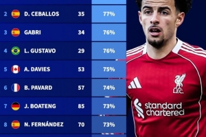 體育資訊3月18日訊 德國轉(zhuǎn)會市場盤點(diǎn)了1992-93賽季歐冠改制以來,至少出戰(zhàn)25場比賽的球員勝率情況,利物浦的柯蒂斯·瓊斯以80%的勝率居首。