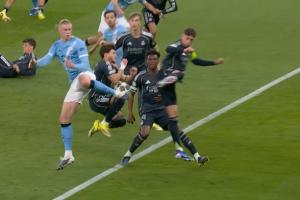 體育資訊03月18日訊 歐冠1/8決賽次回合,曼城對陣皇馬。曼城角球機會,哈蘭德等人抗議弗蘭·加西亞手球,裁判沒有表示。