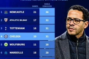 體育資訊3月18日訊 在歐冠淘汰賽次回合,切爾西0-3不敵巴黎。以下為自2026年各項賽事丟球榜,其中切爾西31球第四。
