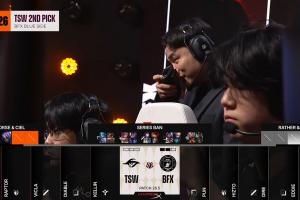 體育資訊03月19日訊 BFX VS TSW比賽第三局,賽前BP階段直播UI出現問題,雙方隊名反了??