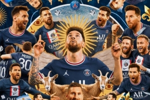 梅西達成職業生涯900球里程碑,法甲官方社媒曬出海報,對他表示祝賀,配文:“900球,The GOAT,梅西。”