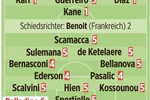 體育資訊3月19日訊 歐冠1/8決賽次回合比賽,拜仁主場4-1擊敗亞特蘭大,總比分10-2晉級(jí),《圖片報(bào)》對(duì)兩隊(duì)球員和教練進(jìn)行了評(píng)分。