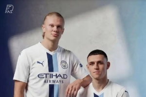 有設(shè)計師已根據(jù)這一熱門設(shè)計,PS出了曼城球員身著該球衣的上身效果圖,提前展現(xiàn)了球衣的賽場視覺效果。