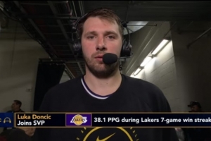 體育資訊3月19日訊 今日,湖人124-116客場擊敗火箭,豪取七連勝。賽后,湖人球星東契奇接受了采訪。