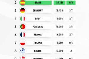 體育資訊3月20日訊 歐戰(zhàn)1/8決賽戰(zhàn)罷,媒體列出了本賽季各聯(lián)賽歐戰(zhàn)積分排名,英超24.791分居首,只需要一場平局就能鎖定額外歐冠席位,西甲20.281分次席,6支球隊(duì)晉級(jí)歐戰(zhàn)8強(qiáng)形勢大好。