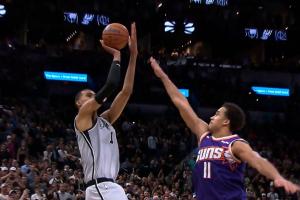 但關鍵時刻太陽前鋒弗萊明兩罰不中,給馬刺留下10.4秒的時間。文班亞馬拿到球后不慌不忙,連續假動作找準機會,運一步直接干拔出手,皮球應聲落網,馬刺101-100反超太陽。