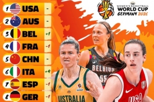 其中,美國女籃穩居榜首,澳大利亞女籃跟隨其后,中國女籃排在第5位。