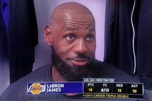 比賽最后時刻詹姆斯發球給東契奇后者被犯規,第一罰投丟后命中第二個得分達到60,談到這個瞬間,詹姆斯說:“你們都看到了我們在場上的反應。我們都非常高興他能罰進最后一個球,讓他拿到60分。”