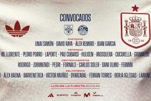 體育資訊03月20日訊 西班牙國家隊今日公布了新一期球員名單,亞馬爾、佩德里領銜,羅德里、庫巴西在列,霍安·加西亞首次入選。本次國際比賽日,西班牙將先后交手塞爾維亞、埃及。