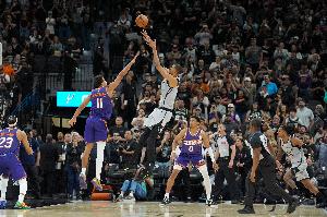 落后1分敢壓時間!文班亞馬連續晃動后運一步干拔后仰準絕殺太陽