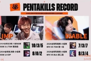 體育資訊3月20日訊 在本次全球先鋒賽中,Diable連續兩個BO5拿下五殺,分別是BFX對陣BLG第二局的金克斯,以及BFX對陣TSW第一局的伊澤瑞爾;