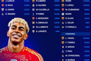 亞馬爾(2億歐)、費蘭·托雷斯(5000萬歐)、巴埃納(4500萬歐)、皮諾(3500萬歐)、奧亞薩瓦爾(2500萬歐)、維克托·穆尼奧斯(2000萬歐)、巴雷內切亞(1800萬歐)、伊格萊西亞斯(300萬歐)