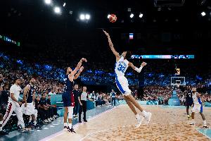 賽后,科爾接受了記者采訪。當被問及自己是否想起來巴黎奧運會的最后時刻時,他說道:“實際上我沒有。但我依舊還記得在巴黎奧運會庫里面對文班出手三分的那張圖。我們要把那個照片Copy下來,放在我房間的某個地方。那看起來真是非凡的。當我們看到那個垂直高度,以及他(文班亞馬)的平衡度,還有對于比賽的影響,他真的太棒了。”