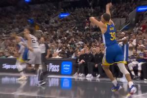 GIF-庫里高打板越過文班指尖!這可是文班啊!