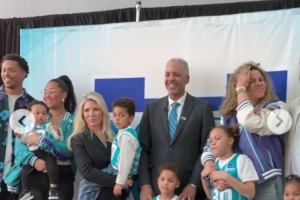 “我非常高興父親能獲得這份榮譽(yù),不僅僅因?yàn)樗乔癗BA球員,讓我有機(jī)會(huì)目睹他的每一個(gè)動(dòng)作,更因?yàn)樗且晃唤涛掖蚯虻母赣H,甚至比我本人還要愛(ài)籃球。他向我展示了成為一名真正的職業(yè)球員的意義,以及如何通過(guò)努力贏得這一切。所以,籃球?qū)τ谖覀兗易鍋?lái)說(shuō)就是重要的一部分。今天能夠和我的兄弟(賽斯)一起出席儀式,對(duì)我來(lái)說(shuō)意義重大。顯然,庫(kù)里家族的歷史與夏洛特緊密相連,而30號(hào)球衣以后將永被銘記,這對(duì)我們來(lái)說(shuō)意味著所有。這也是我的父親仍然住在這里的原因,這里依然是我們的家。”庫(kù)里表示。