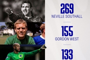 埃弗頓官方曬出俱樂部隊史零封榜單,皮克福德排名第五,距離第四的薩加爾還差20場。