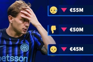 現年29歲的巴雷拉本賽季為國米各項賽事出戰35場,收獲1球7助。他目前的身價為6000萬歐,巔峰身價則是兩年前的8000萬歐。此次下跌,將是巴雷拉的身價4連跌。