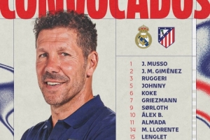 前鋒:7-格列茲曼、9-瑟爾洛特、10-巴埃納、11-阿爾馬達(dá)、19-阿爾瓦雷斯、20-朱利亞諾·西蒙尼、22-盧克曼、34-胡里奧·迪亞斯