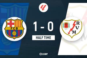 上半場補時3分鐘,巴薩1-0巴列卡諾。