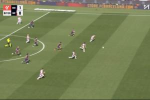比賽第83分鐘,巴列卡諾反越位戰(zhàn)術(shù)打成,埃斯皮諾得球,此時巴列卡諾4人直面巴薩門將霍安·加西亞,但最終埃斯皮諾的射門打高了。
