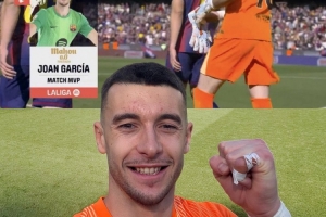 體育資訊3月22日訊 西甲第29輪比賽,巴薩在諾坎普以1-0的比分小勝巴列卡諾。本場比賽,紅藍軍團門將霍安·加西亞表現出色,賽后被評為全場最佳球員。