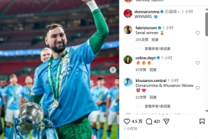 多納魯馬也收獲個(gè)人曼城生涯首個(gè)冠軍,賽后他也在社媒曬出自己與冠軍獎(jiǎng)杯慶祝合影,配文寫道:“冠軍!”