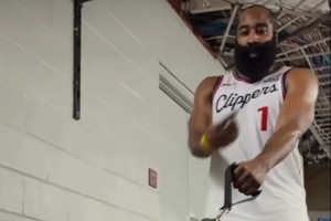賽后,哈登曬出了自己訓練的視頻,并寫道:“我想永遠走下去!“