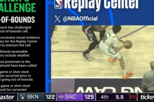 GIF-特拉奧雷進攻犯規,籃網挑戰,結果回放已經踩邊線,挑戰失敗