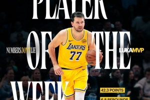 體育資訊3月24日訊 今日NBA官方宣布,湖人球星東契奇當(dāng)選上周西部周最佳球員!