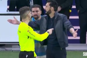 皇馬球員們滿臉難以置信,看臺上噓聲震天,替補席上的阿韋洛亞更是毫不掩飾對裁判判罰的不滿。此時,主裁判主動走向阿韋洛亞,向他解釋直接出示紅牌的判罰依據。