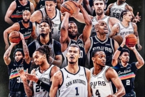 賽后,馬刺官方也曬出了全陣容的海報(bào),并寫道:“??2026年西南賽區(qū)冠軍??。”