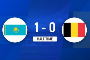 上半場比賽結束,哈薩克斯坦1-0比利時。