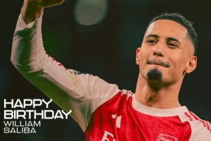 體育資訊3月24日訊 今天是阿森納中衛薩利巴的25歲生日,阿森納官方社媒為他送上祝福。