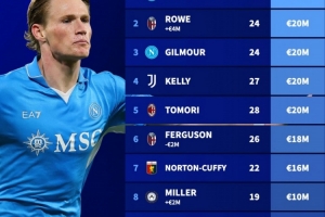 體育資訊3月24日訊 德國轉(zhuǎn)會市場公布了新一期的意甲球員身價情況,并且盤點(diǎn)了在意甲效力的英國球員身價情況,麥克托米奈以4500萬歐居首。