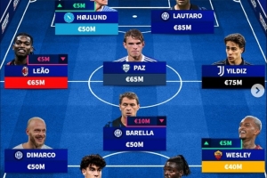 中場:萊奧(6500萬歐、米蘭)、巴雷拉(5000萬歐、國米)、帕斯(6500萬歐、科莫)、伊爾迪茲(7500萬歐、尤文)