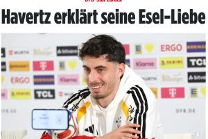 哈弗茨:“是的,我對驢的喜愛一直存在。具體來說,我就是喜歡驢子。我不知道這種感情是怎么產生的。大概在我很小的時候,不知怎么就喜歡上了驢子。隊友們也知道這件事,有些人還會拿這件事開玩笑。對我個人來說,動物保護一直是非常重要的議題。我非常喜歡動物,家里養了三只狗。我們在德國也有驢子。總的來說,驢子是特別棒的動物。”