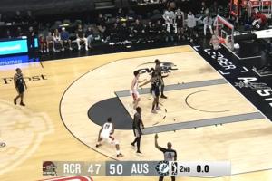 GIF-楊瀚森精妙的一個接長傳點傳助攻!隊友肯特壓哨中投轟進!小楊不可思議抱頭!