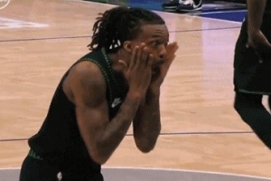 GIF-海蘭德退防撞上芬尼-史密斯,裁判吹海蘭德犯規