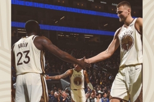 賽后球隊官方發布贏球海報,封面人物為內線組合波爾津吉斯+追夢格林。